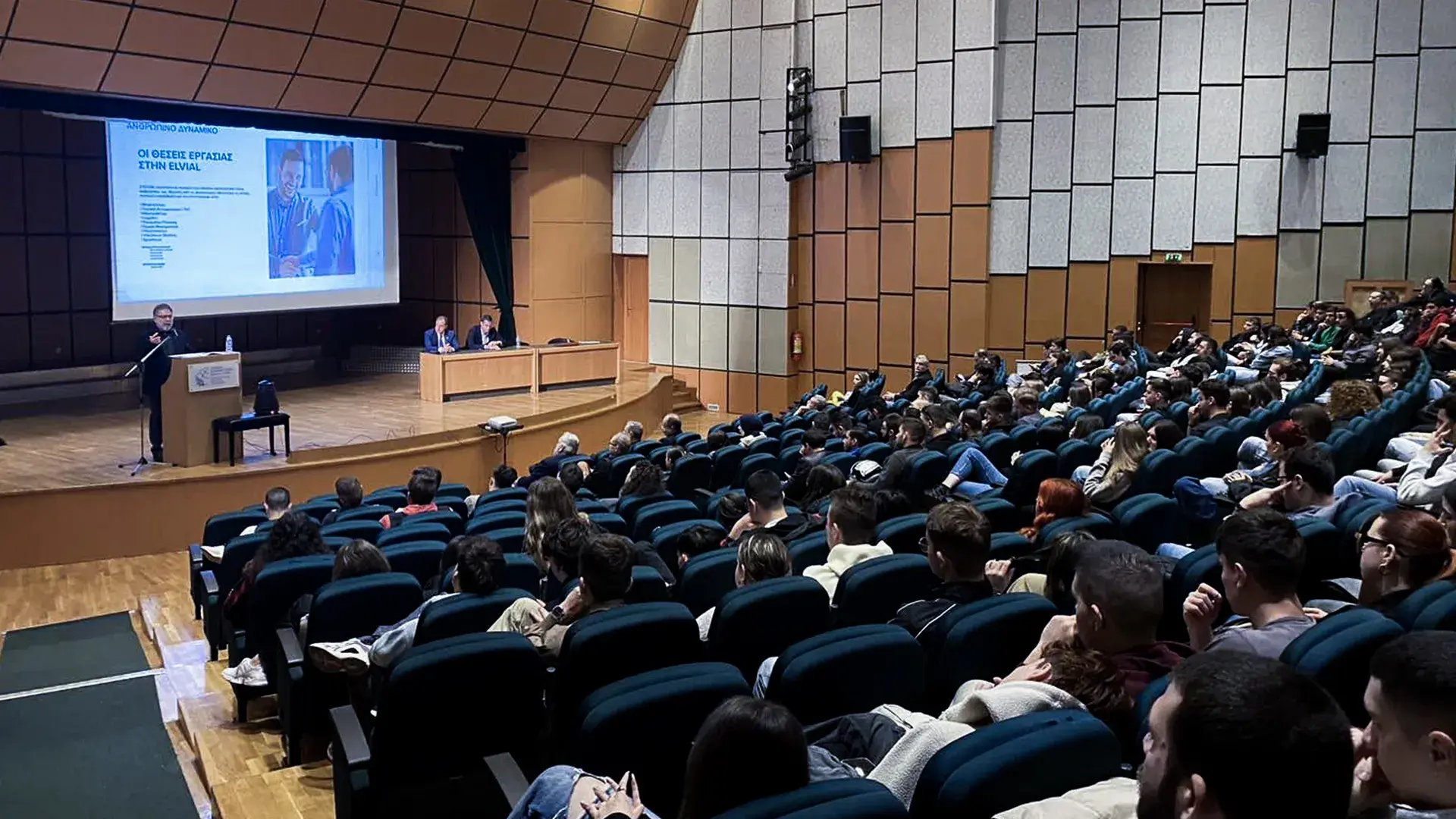 On Thursday, May 16, 2024, the Department of Organization and Business Administration in collaboration with the School of Engineering and the Postgraduate Program in Business Administration of the International Hellenic University organized an event with speakers from two high level executives of ELVIAL, in the central auditorium of the "Evagoras Pallikaridis" Serres Campus. The event was attended by more than 200 students from almost all Departments of the Campus.