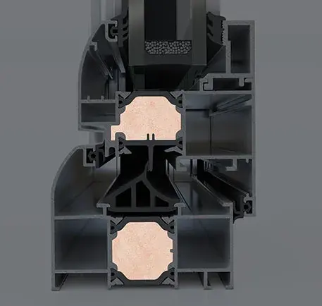 Η καινοτόμος τεχνολογία ELVIAL I² εφαρμόζεται σε όλα τα προφίλ του συστήματος. Με αυτό τον τρόπο, δημιουργείται μια extra ζώνη θερμομόνωσης στο μεσαίο θάλαμο των προφίλ, που ενισχύει την ενεργειακή του απόδοση [Uf] έως και 38%.