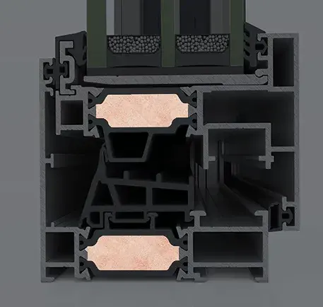 Η καινοτόμος τεχνολογία ELVIAL I² εφαρμόζεται σε όλα τα προφίλ του συστήματος. Με αυτό τον τρόπο, δημιουργείται μια extra ζώνη θερμομόνωσης στο μεσαίο θάλαμο των προφίλ, που ενισχύει την ενεργειακή του απόδοση [Uf] έως και 38%.