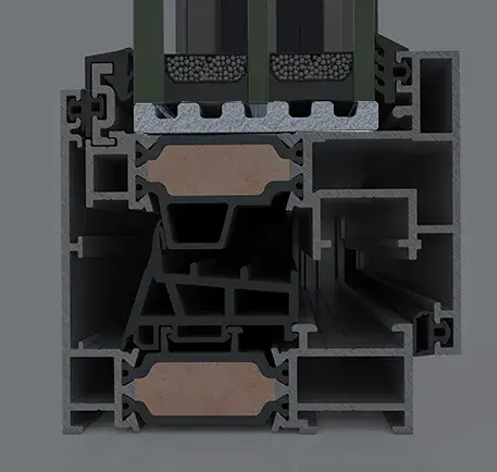 Σε όλα τα προφίλ του συστήματος εφαρμόζονται μονωτικές ράβδοι πλάτους 32mm με υαλοενίσχυση 25%, προσφέροντας υψηλά επίπεδα θερμομόνωσης και εξαιρετική στατική αντοχή. -