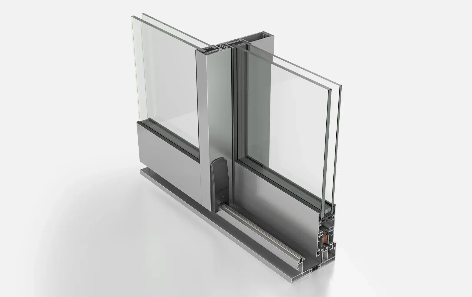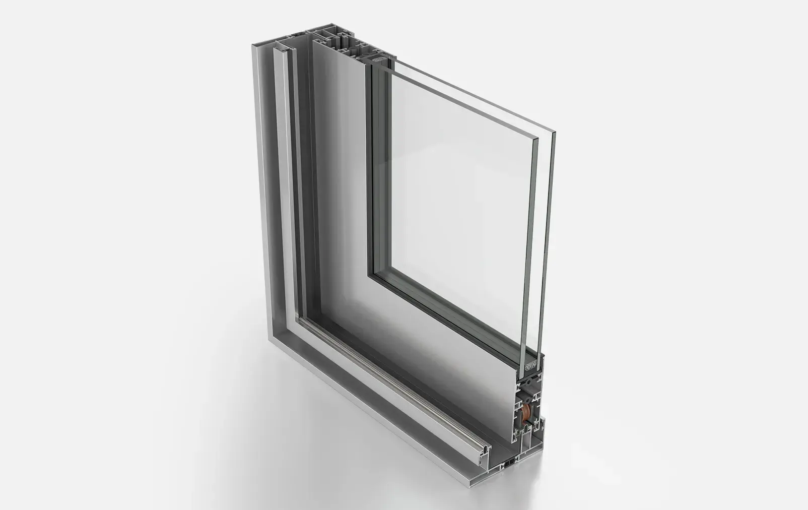 Insulating bars with 25% glass reinforcement of 20mm in tracks and 28mm in sashes are applied, offering thermal insulation and rigidity. -