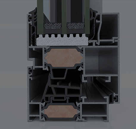 Wide insulating bars with 25% glass fibre reinforcement of 32mm, are applied to all system profiles, offering high thermal insulation levels and extra rigidity. -
