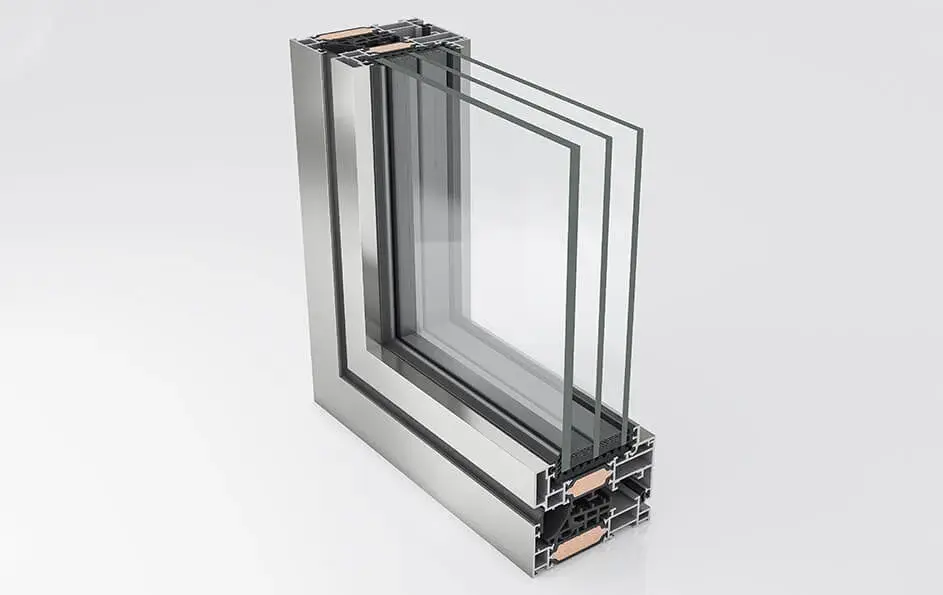 Wide insulating bars with 25% glass fibre reinforcement of 42mm, are applied to all system profiles, offering high thermal insulation levels and extra rigidity. -
