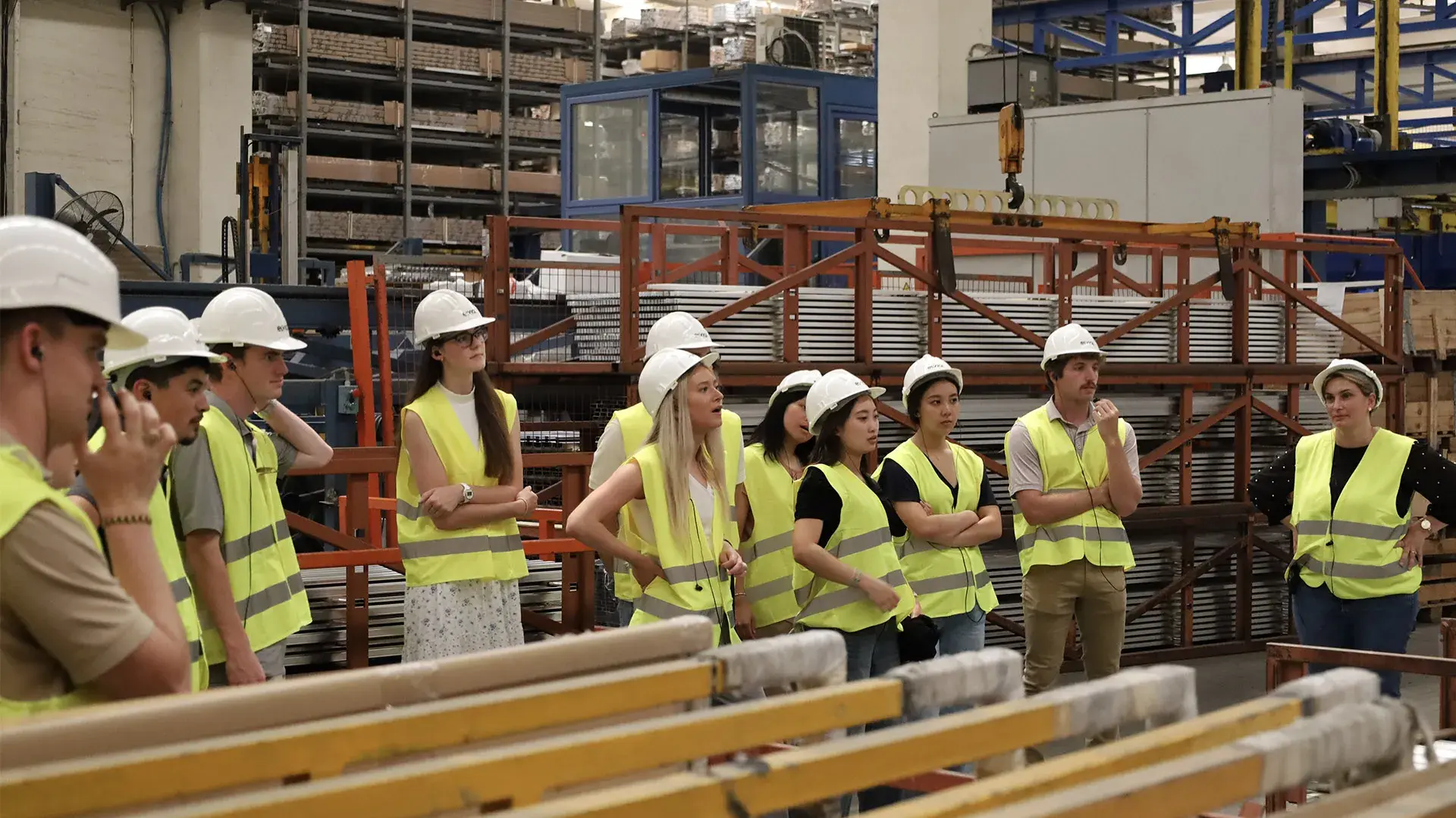 Studente su dočekali gospodin Nikos Kyriakou, tehnički direktor i predstavnik menadžmenta, gospodin Pavlos Vagionas, direktor pogona, i gospodin Stefanos Sfikas, menadžer proizvodnje. Trojica predstavnika ELVIAL-a vodili su obilazak proizvodnih, istraživačkih i razvojnih odeljenja kompanije, pružajući posetiocima sveobuhvatan uvid u industrijske procese i napredne tehnologije koje su u primeni.